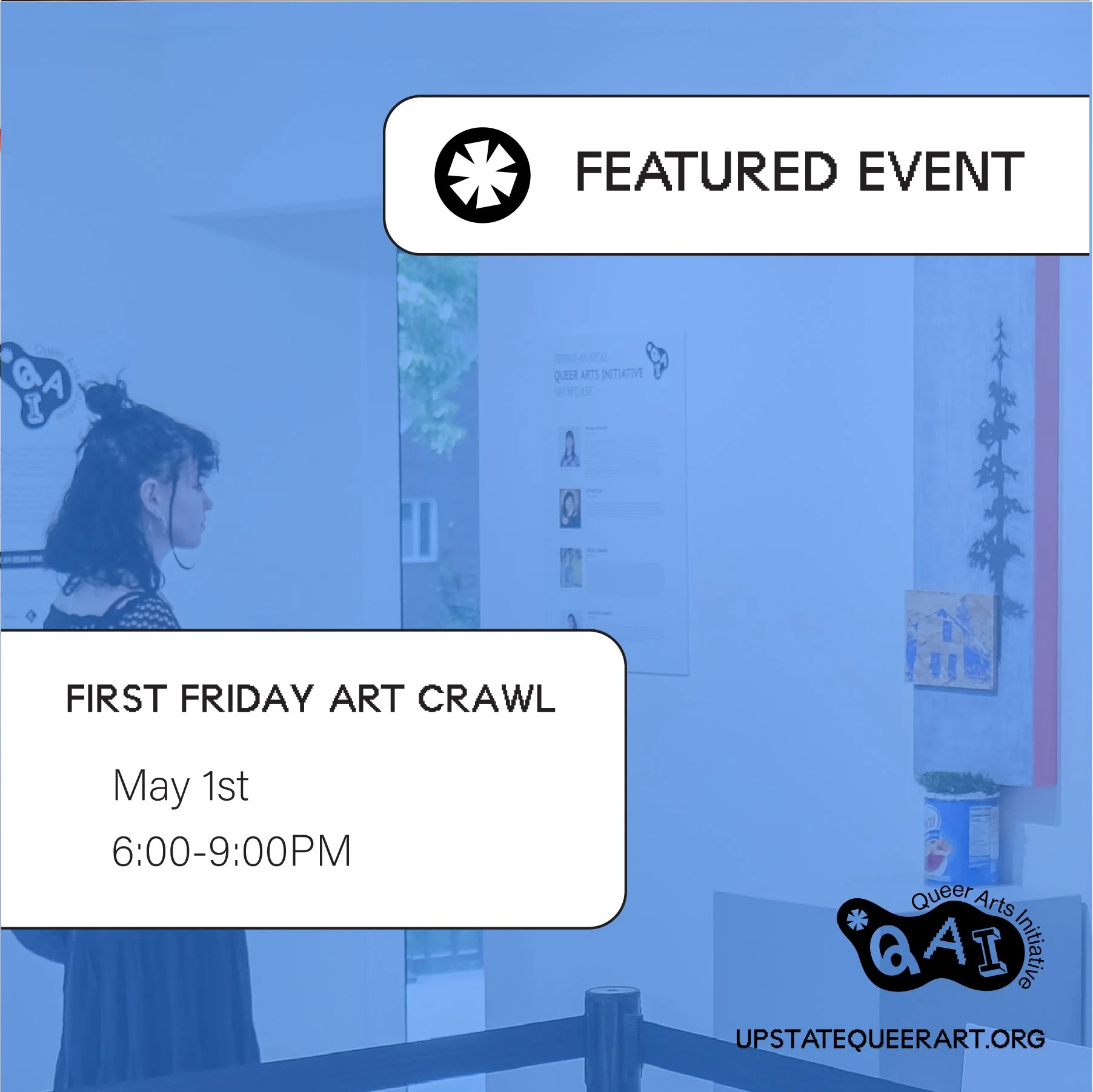 Please arrive no later than 6:30PM, a committee member from QAI, will be there to share more information about the galleries and studios we’ll be visiting for the evening. If you can, please carpool so you can migrate to each gallery together. If you need a ride between stops, please feel free to message us on Instagram. Feel free to follow us on Instagram to track where we are in the crawl if you want to meet up with us later in the evening. Hope to see you there!